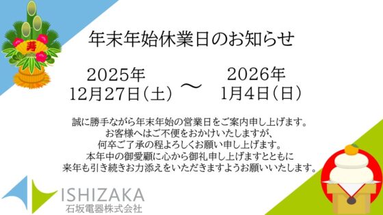 【休業期間】 2025年12月27日(土)~ 2026年1月4日(日)